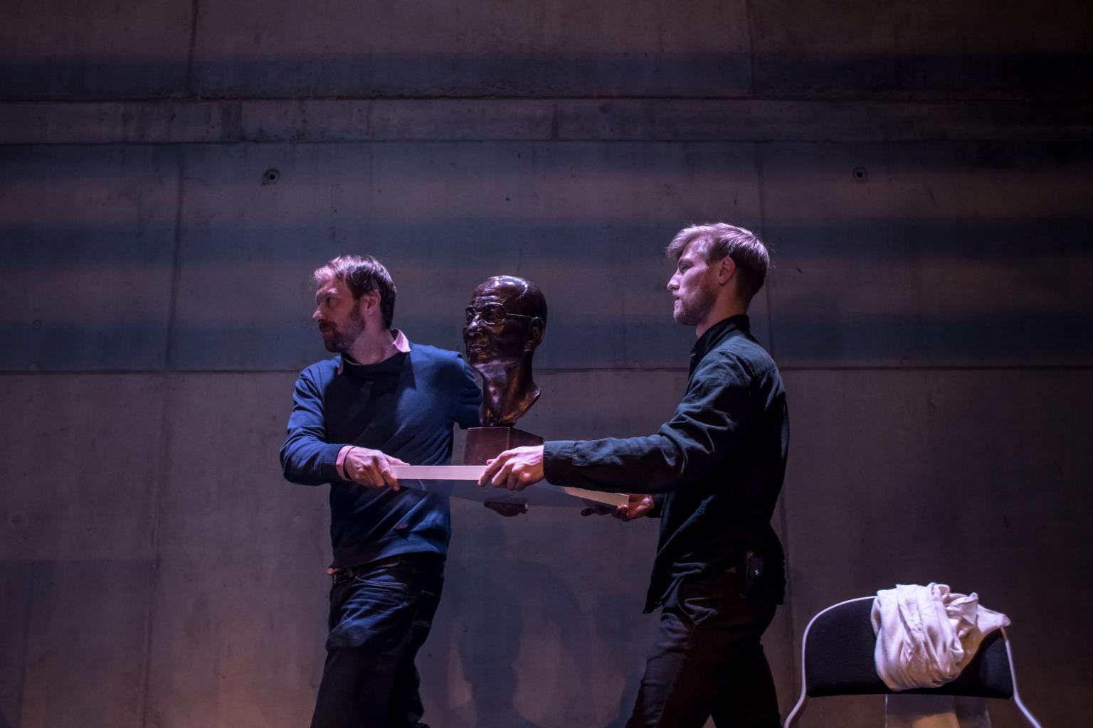 Workers carry a bust of Chinese Nobel Peace Prize winner Liu Xiaobo after its unveiling at the DOX Centre for Contemporary Art in Prague, Czech Republic, on April 15, 2019.