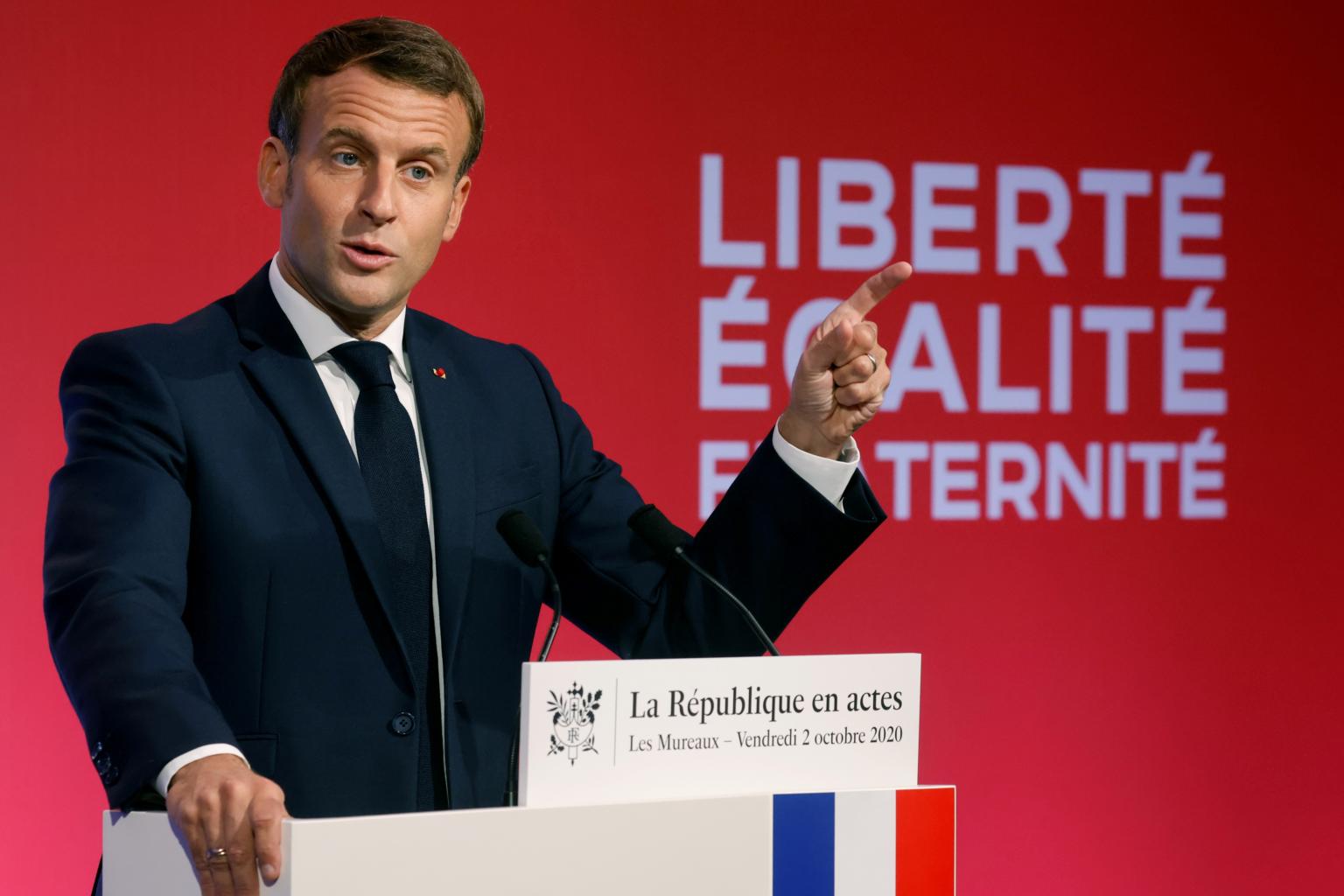 French President Emmanuel Macron presents his strategy to fight separatism, in Les Mureaux, France, on Oct 2, 2020.