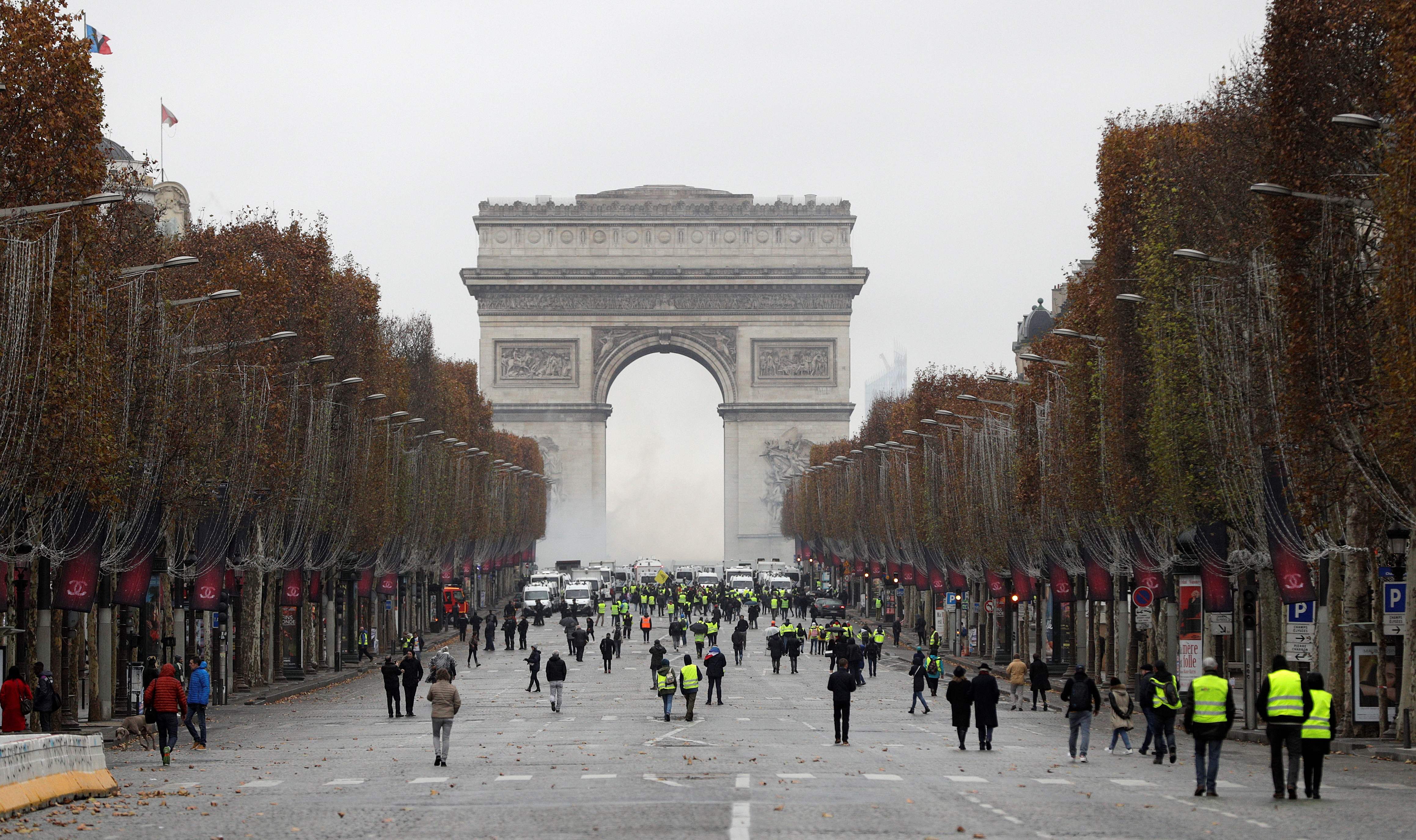 On the facade of the towering 19th-century arch, protesters scrawled in big black letters: "The yellow vests will triumph."