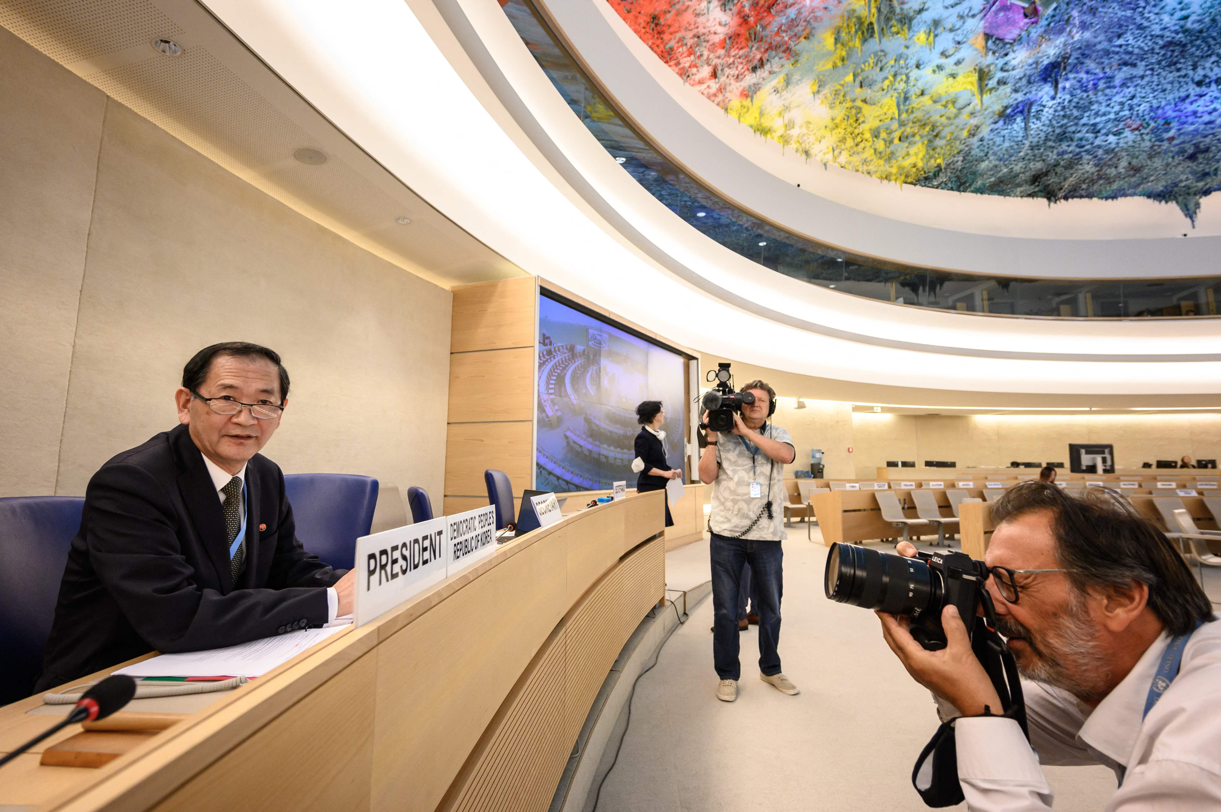 Pyongyang's ambassador, who opened Thursday's meeting held exceptionally in the United Nations' distinctive human rights chamber in Geneva, merely responded: "The president takes note of your statement."