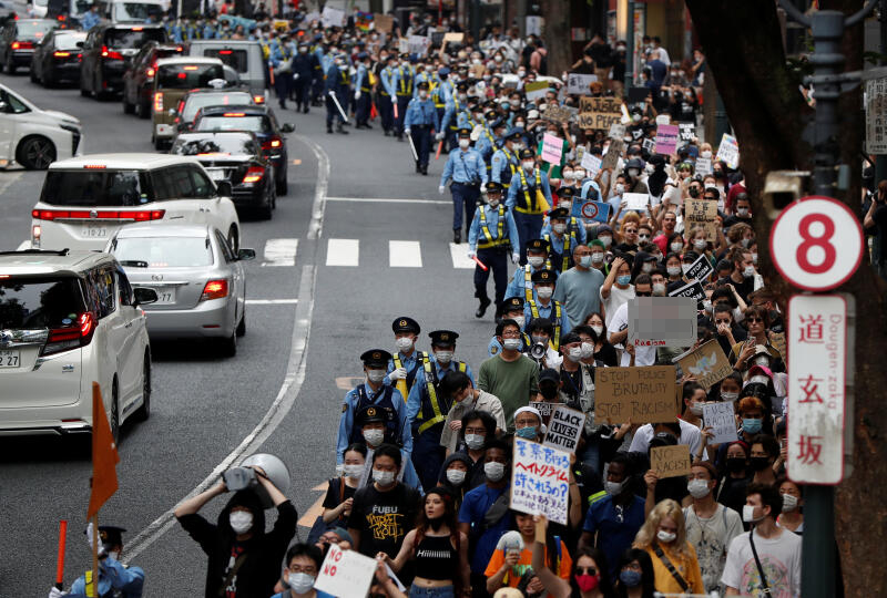 In Tokyo, marchers protested against what they said was police mistreatment of a Kurdish man who says he was stopped while driving and shoved to the ground. Organisers said they were also marching in support of the Black Lives Matter movement.