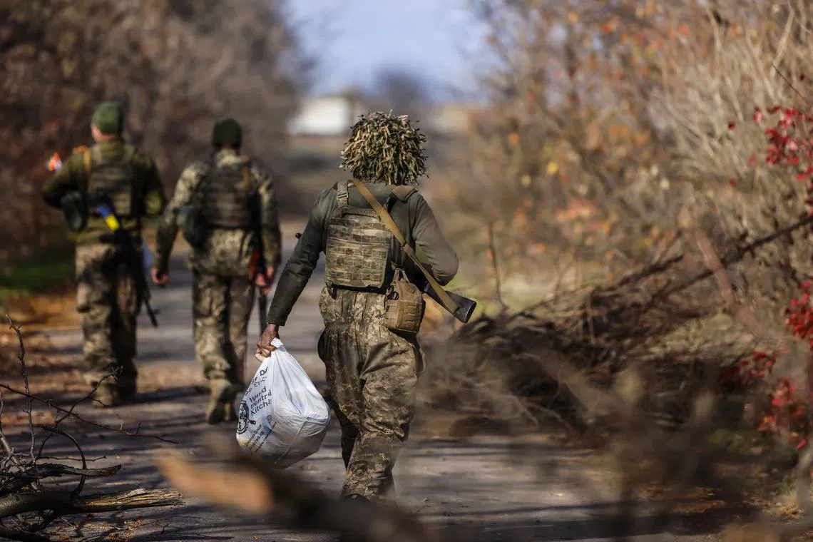 Ukrainian soldiers move along a street in the northern Kherson region, on Nov 4, 2022.