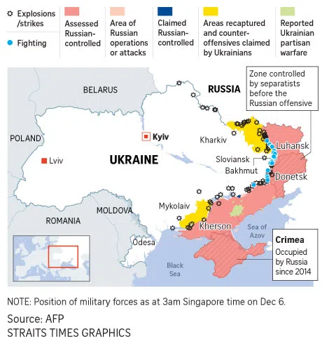 Mr Putin said Russia had already achieved a “significant result” with the acquisition of “new territories” in Ukraine - a reference to the annexation of four partly occupied regions in September that Kyiv and most members of the United Nations condemned as illegal.
