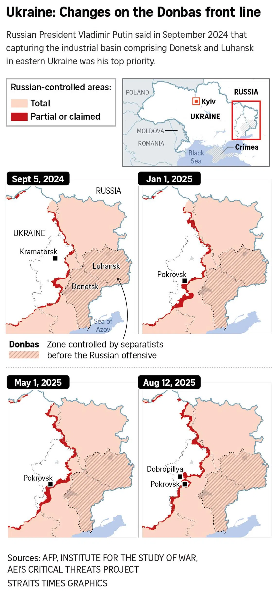 The substance of a peace deal discussed by Mr Trump and Mr Putin in Alaska on Aug 15 remains murky. The few known details come from the US President’s telling of the discussion in a later call to European officials.