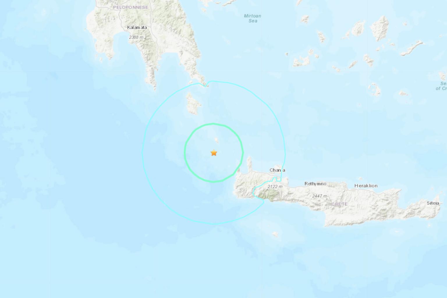 The quake was recorded at a depth of 56km between the islands of Crete and Kythera.
