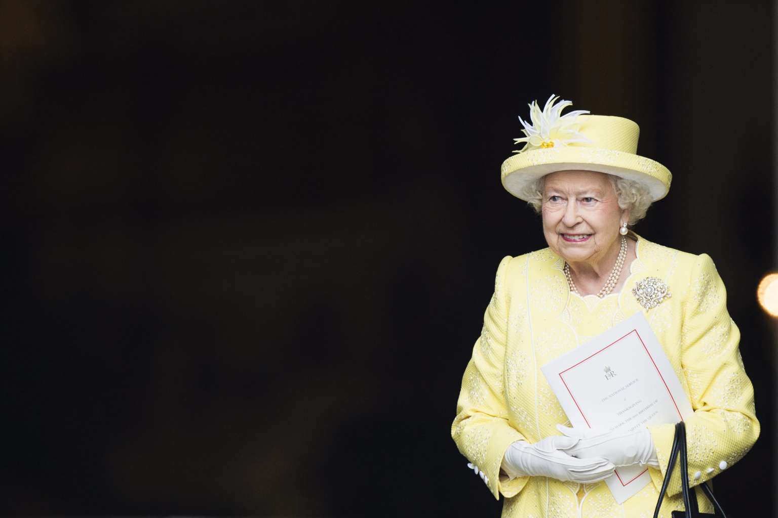 Dressed in canary yellow, the queen entered the 340-year-old cathedral to a fanfare sounded by state trumpeters of the Household Calvary, accompanied by husband Prince Philip, who himself celebrated his 95th birthday on Friday.