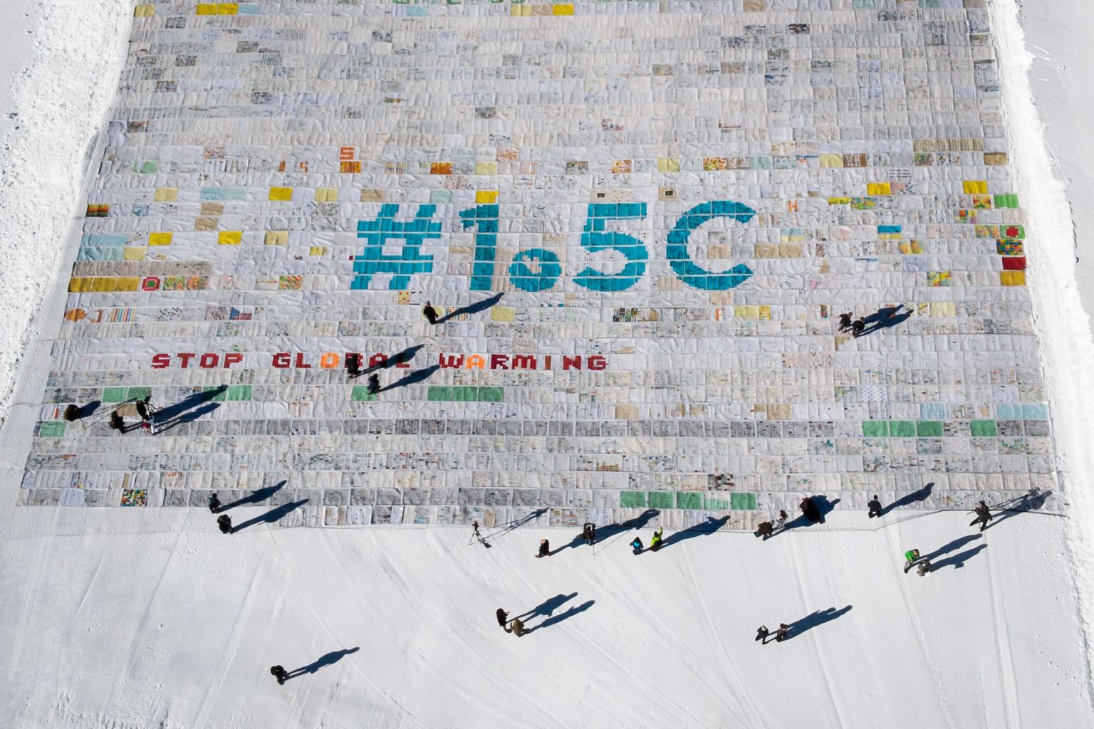 A massive collage of 125,000 drawings and messages from children from around the world about climate change seen rolled out on the Aletsch Glacier at an altitude of 3,400 metres near the Jungfraujoch in the Swiss Alps.