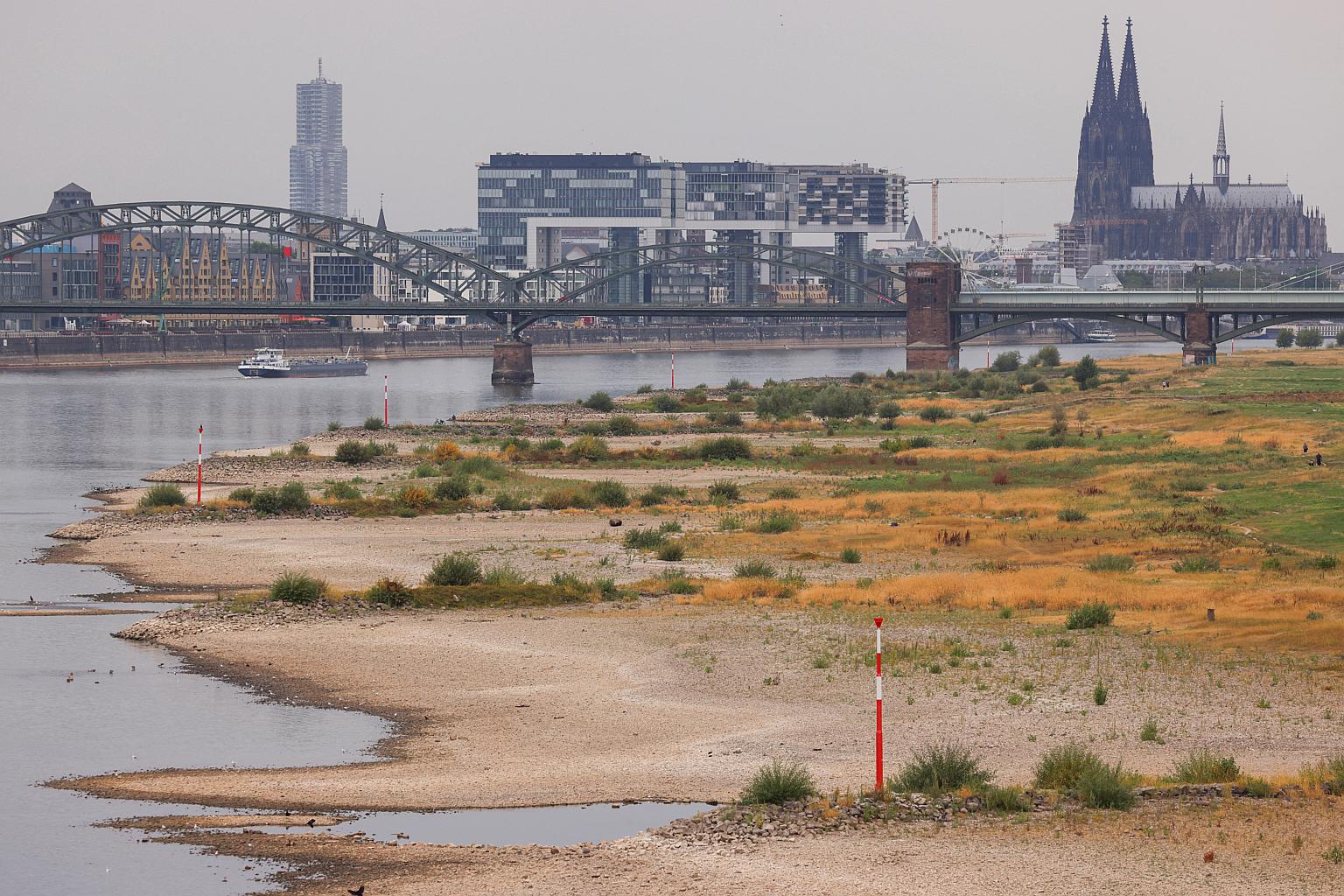 FRANKFURT (BLOOMBERG) - The Rhine river's water level at a key waypoint hit a new low, risking the transit of fuel and other goods as Europe's climate crisis exacerbates its energy-supply crunch.