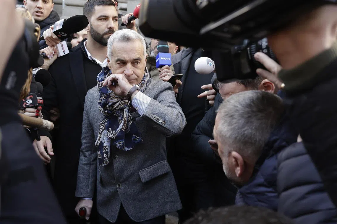 Rar-right presidential candidate Calin Georgescu (centre) leaving a court in Bucharest, Romania, on March 5.