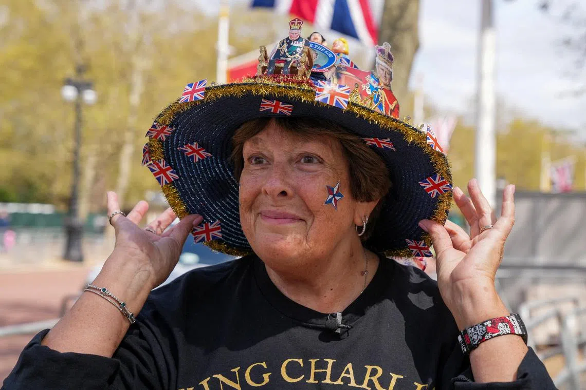 “This is a moment in history. We are so fortunate that we are living through a coronation,” says Ms Marie Scott, who was among the first to set up camp on the avenue leading to Buckingham Palace.