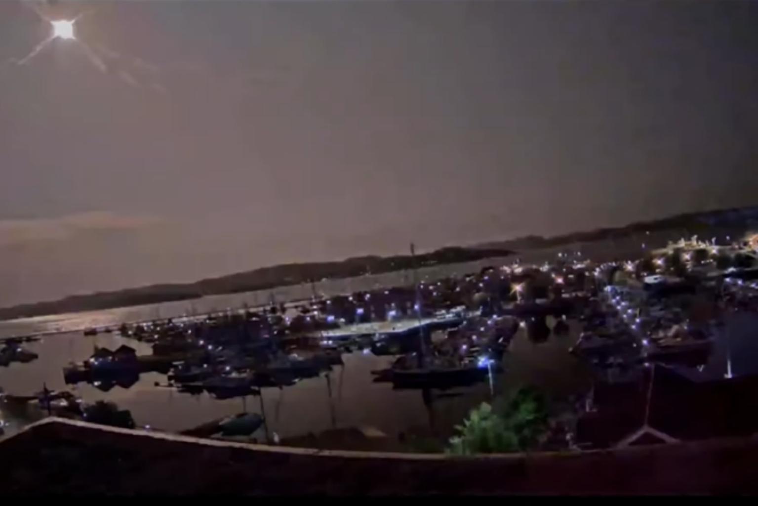 Reports of sightings started arriving around 1am, with video circulating on social media showing at least one bright flash lighting up a marina at Holmestrand, south of Oslo.