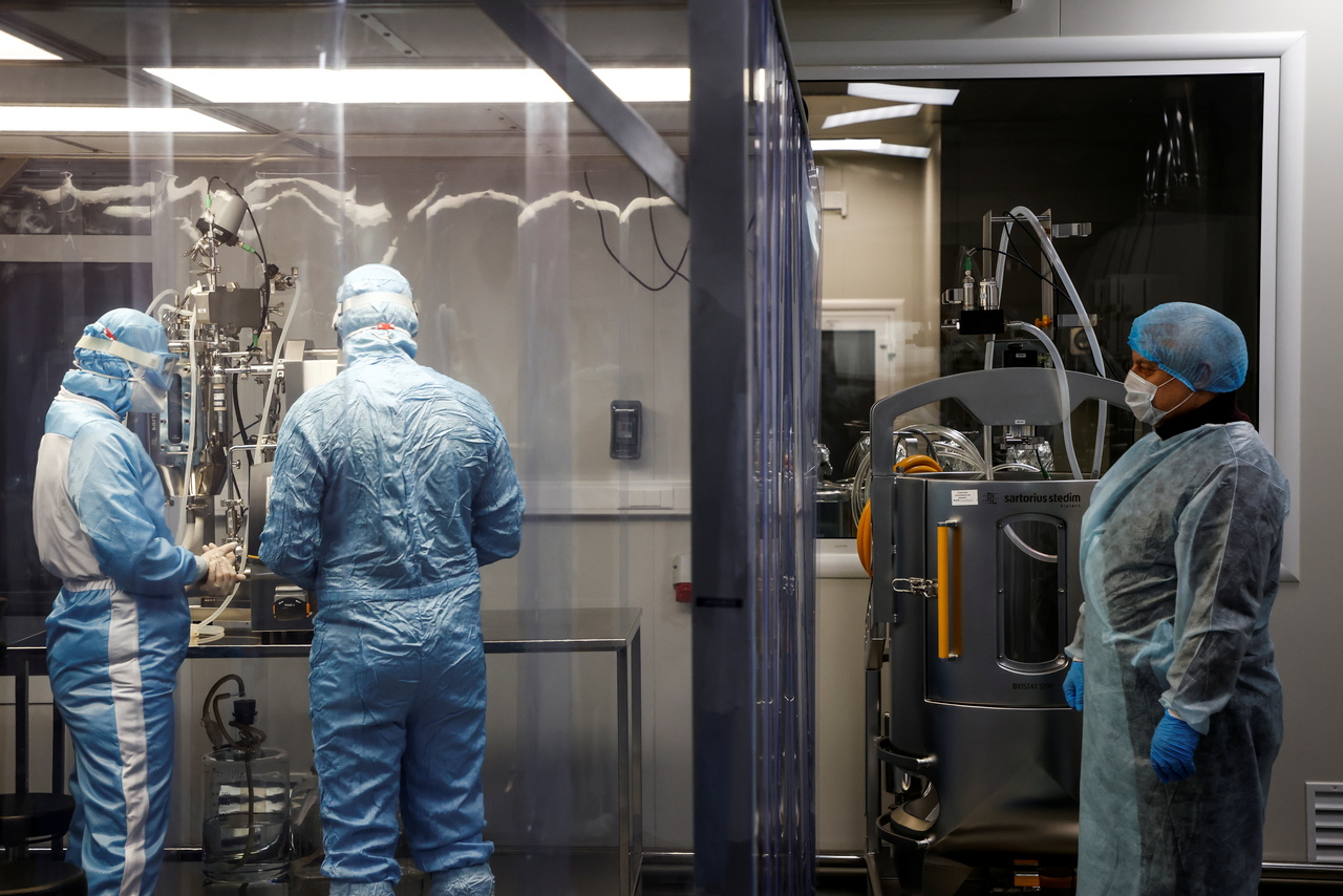<p>Konstantin Chernov, deputy director of Chumakov Federal Scientific Center for Research and Development of Immune-and-Biological Products, which conducts development of Russia's third vaccine against the coronavirus disease (COVID-19), looks at specialists at work in Moscow, Russia January 13, 2021. REUTERS/Maxim Shemetov</p>