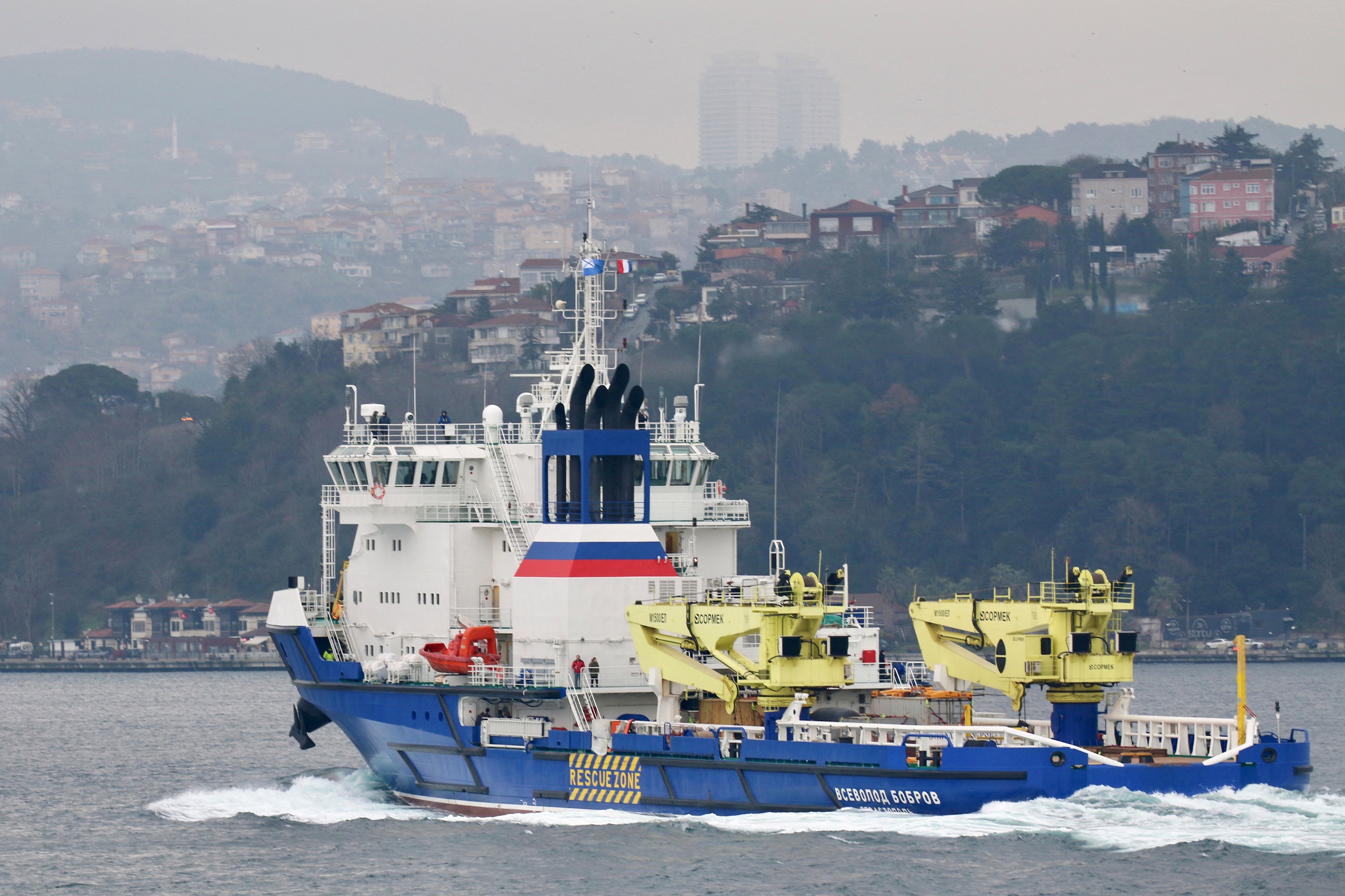 Russian logistics support ship, the Vsevolod Bobrov, is seen in the Bosphorus in January 2022.