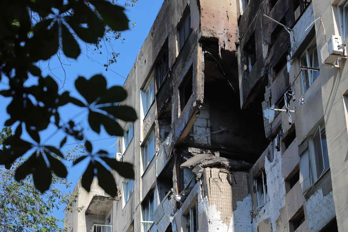 A multi-storey residential building after it was hit by a Russian strike in Odesa on July 3.