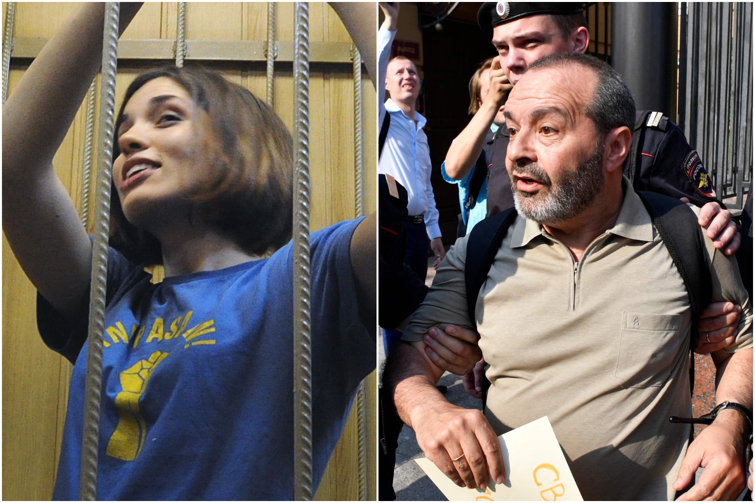 Pussy Riot band member Nadezhda Tolokonnikova (left) and prominent satirist Viktor Shenderovich.