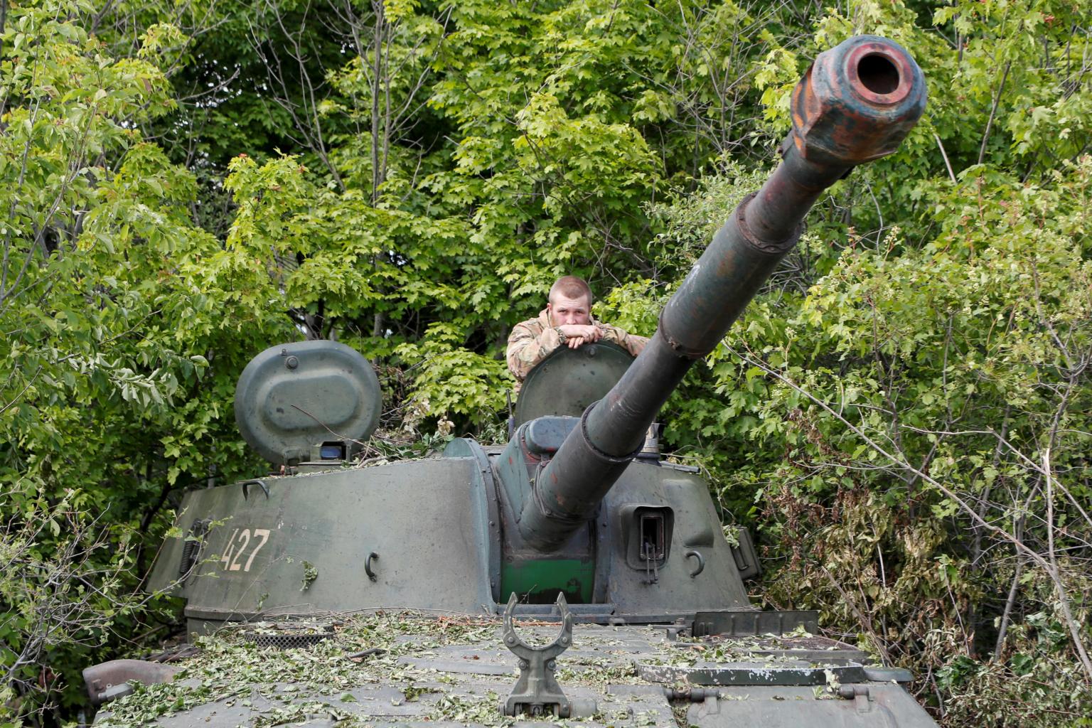 A service member of pro-Russian troops atop a self-propelled howitzer 2S1 Gvozdika the Luhansk region, Ukraine, on May 24, 2022.