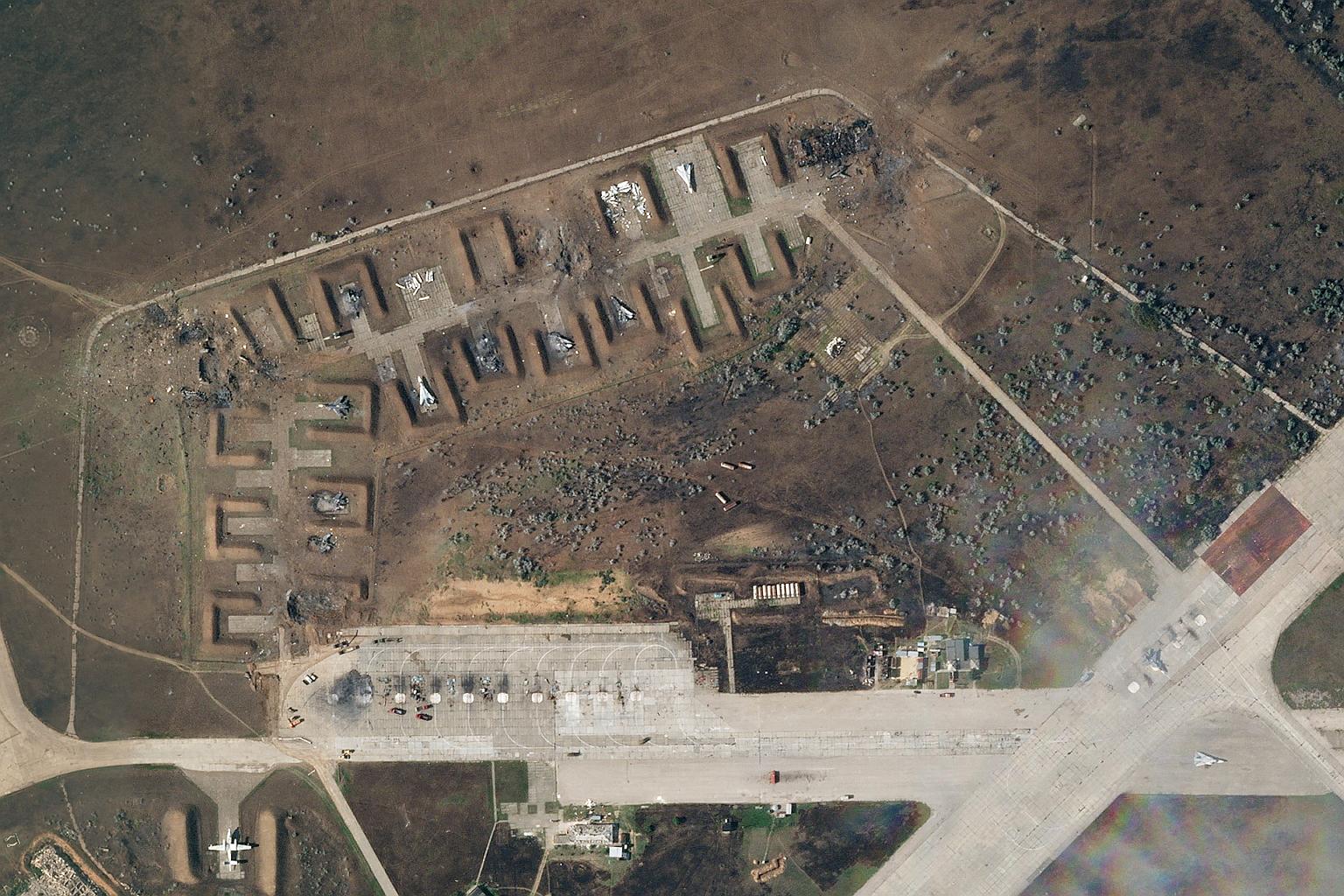 A satellite image showing the destroyed Saky air base in Crimea on Aug 10, 2022.