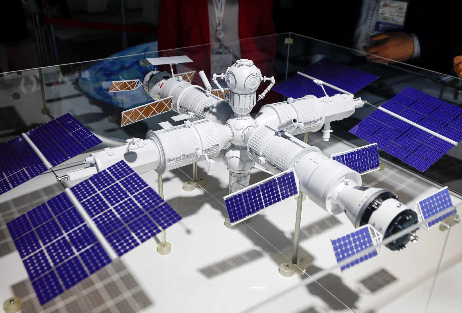 A model of a new Russian orbital space station at Patriot Congress and Exhibition Centre in Moscow, on Aug 15, 2022.