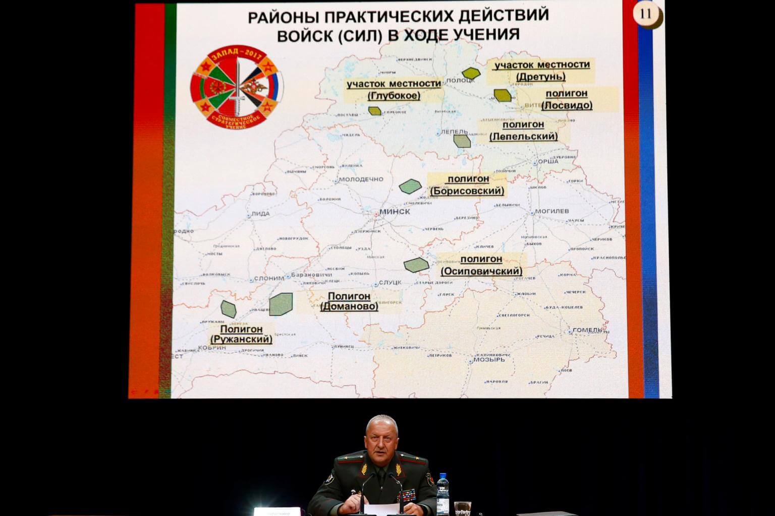Belarussian Deputy Defence Minister Oleg Belokonev attends a news conference on the forthcoming Zapad 2017 joint war games with Russia, in Minsk, Belarus, on Aug 29, 2017.