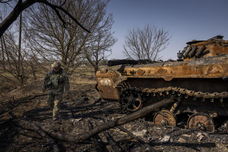 Ukrainian soldiers at a frontline position in Kyiv, Ukraine, on March 24, 2022.