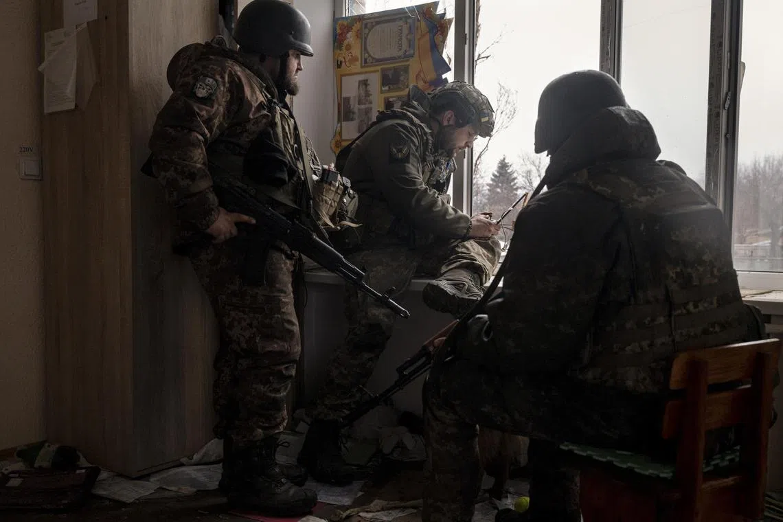 Ukrainian soldiers use a drone to search for Russian soldiers hiding in residential buildings in Bakhmut, Ukraine.