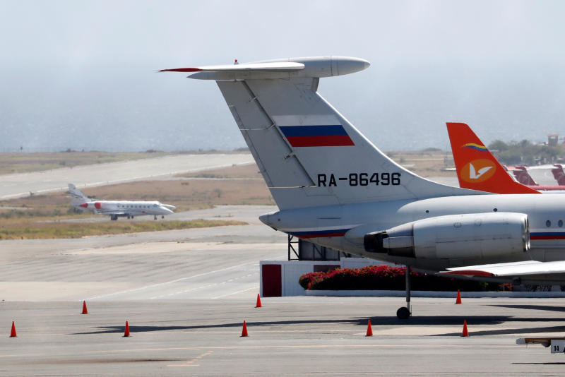 A plane with the Russian flag at Simon Bolivar International Airport in Caracas on March 24, 2019. Russia has deployed troops and equipment to bolster Venezuelan President Nicolas Maduro.
