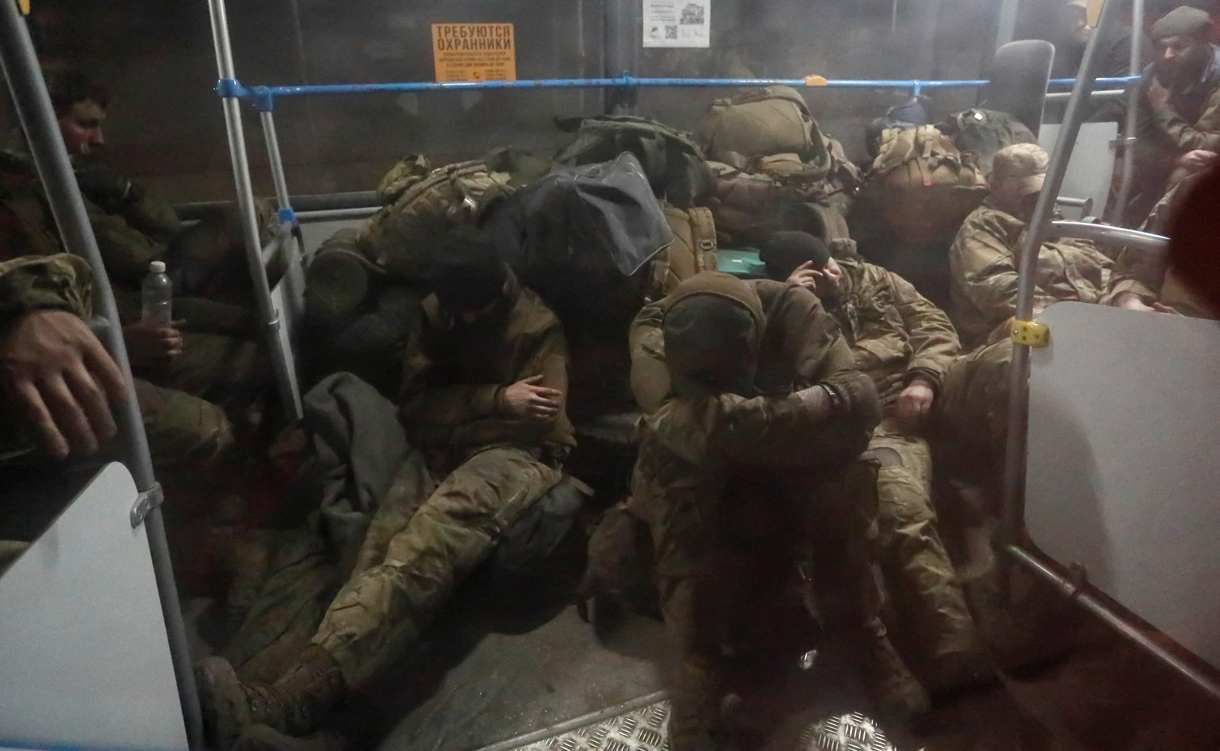Ukrainian servicemen who surrendered at the besieged Azovstal steel mill arrive in Olenivka, in the Donetsk region of Ukraine, on May 20, 2022.