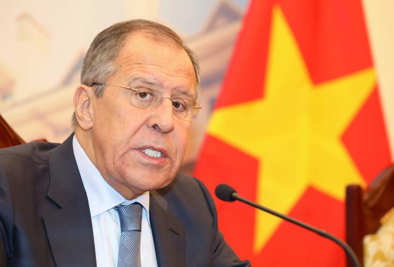 Russia's Foreign Minister Sergei Lavrov speaks during a meeting with his Vietnamese counterpart Pham Binh Minh at the Government Guest House in Hanoi on March 23, 2018.
