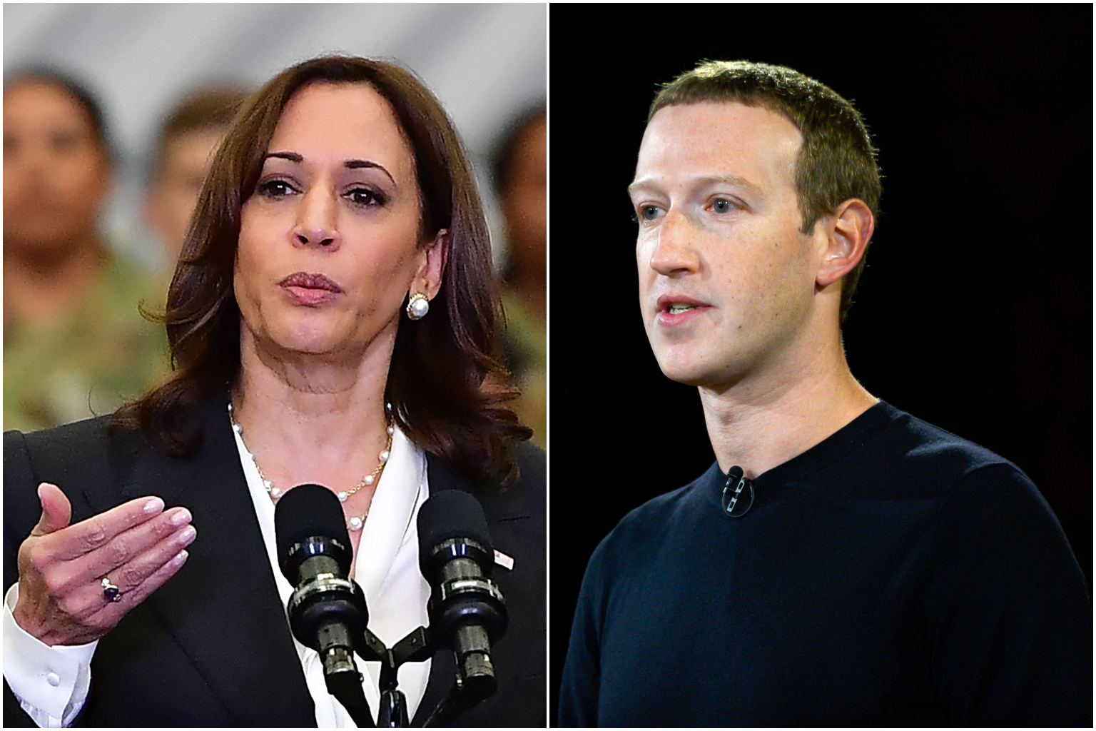 US Vice-President Kamala Harris (left) and Facebook chief Mark Zuckerberg.