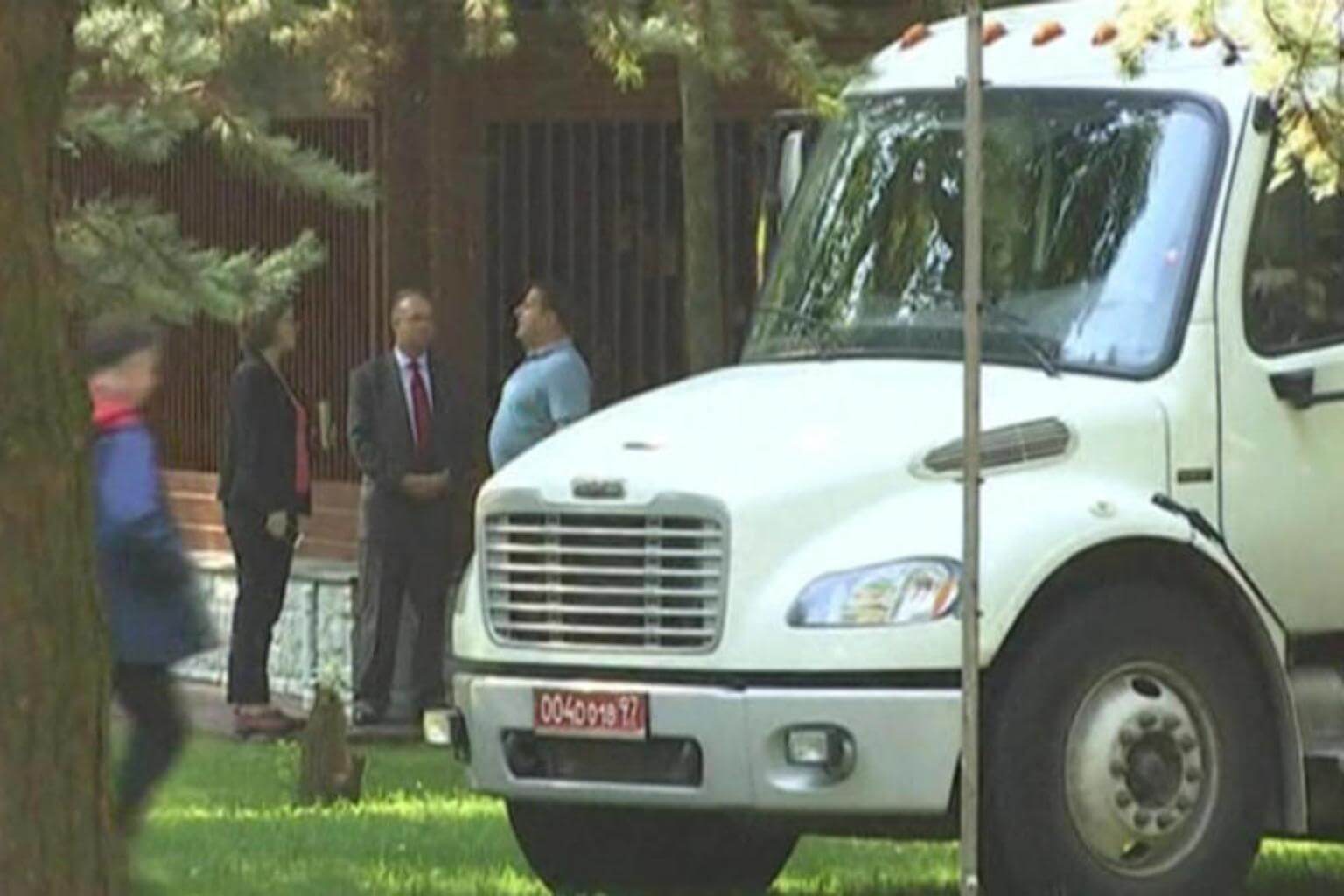 A truck with a diplomatic license plate is seen at a dacha compound used by US diplomats for recreation, in Serebryany Bor in Russia, on Aug 1, 2017.