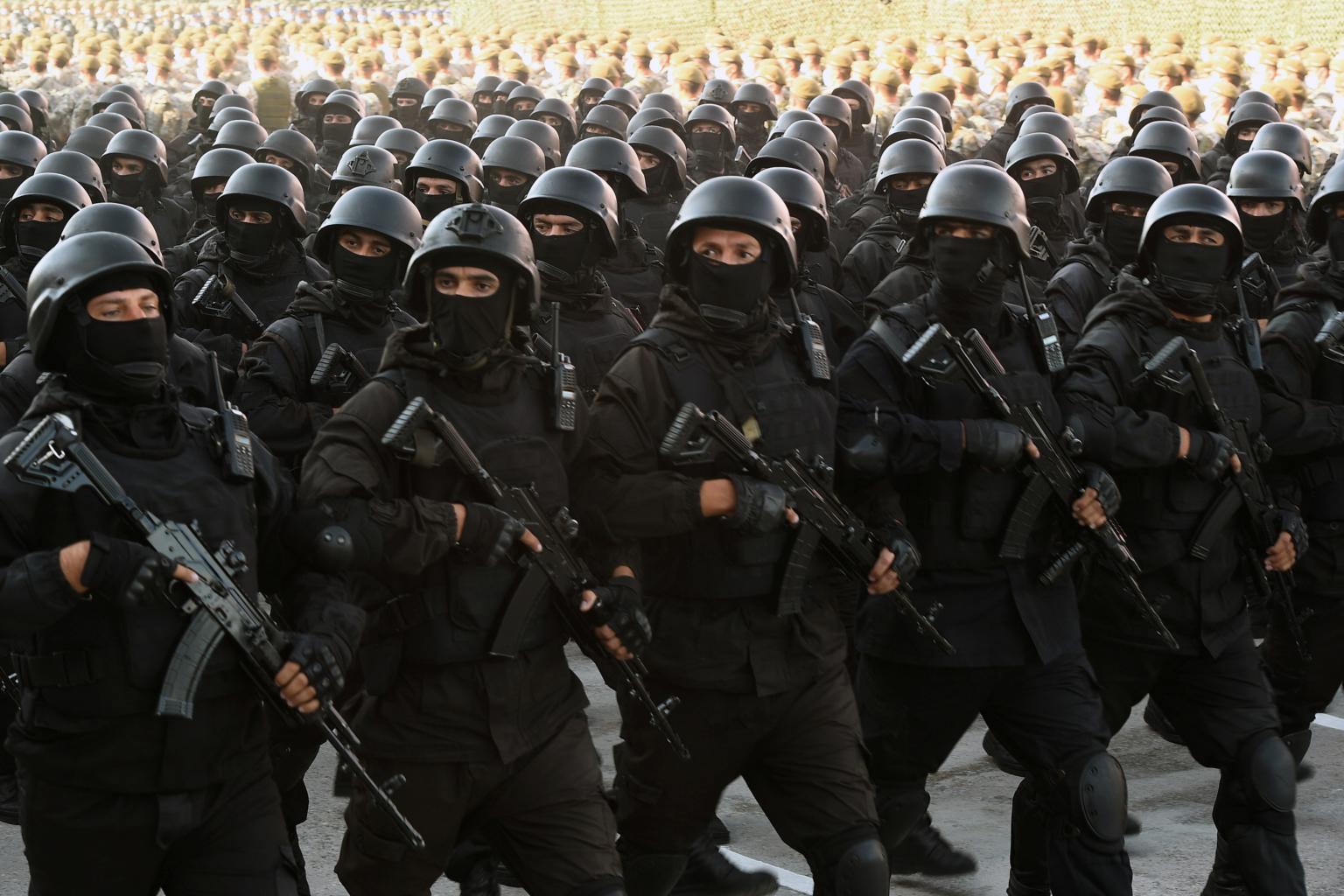 Tajik service members marching in a parade in Dushanbe on July 22 following a nationwide military exercise.