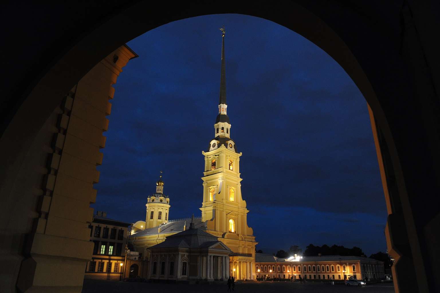 People walk near the Peter and Paul Cathedral in St. Petersburg on Sept 23, 2015. Russian investigators have exhumed the remains of the country's last emperor Nicholas II and empress Alexandra as part of a new probe into the 1918 slaying of the Romanov family.