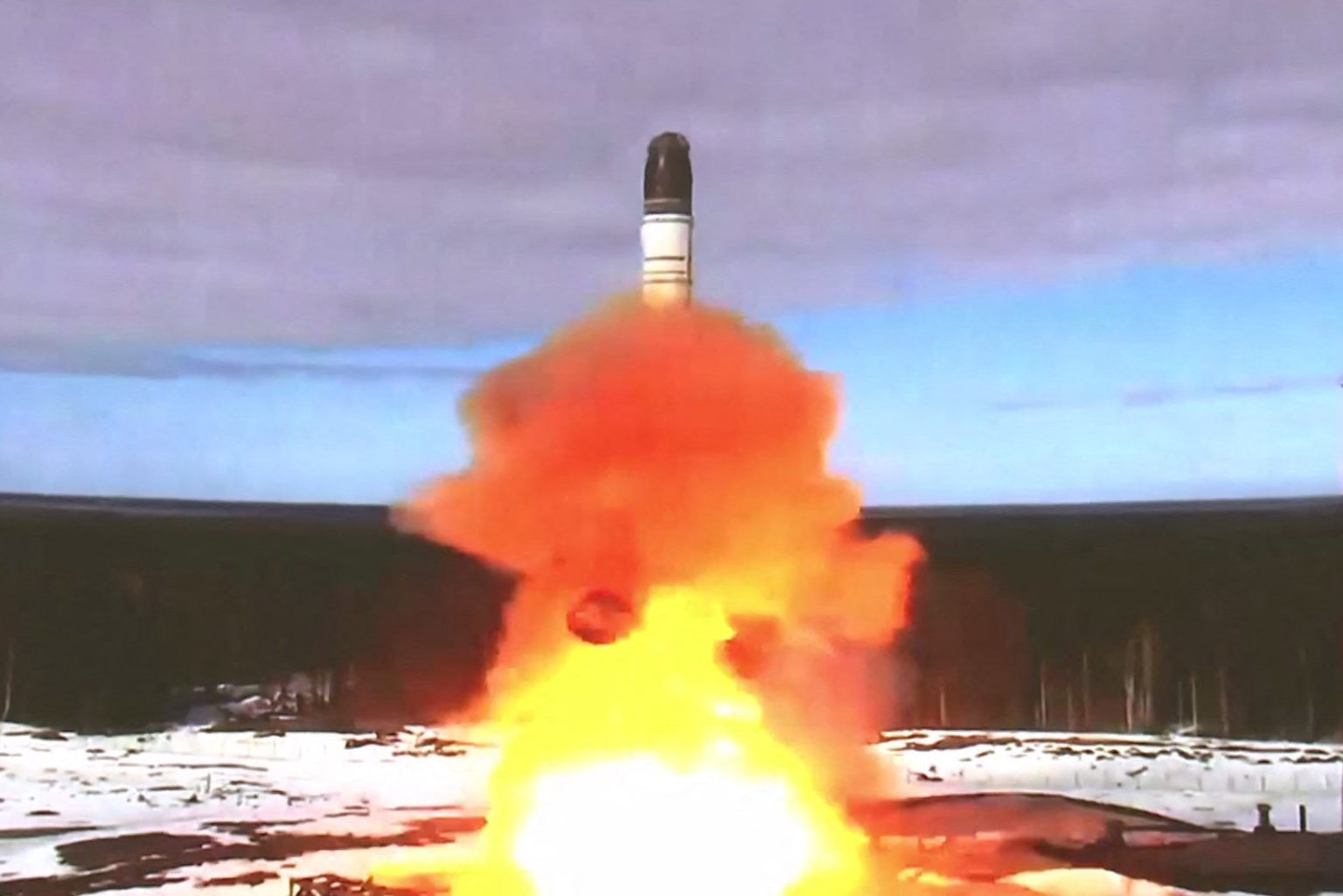 A Sarmat intercontinental ballistic missile is launched at the Plesetsk testing field in Russia.