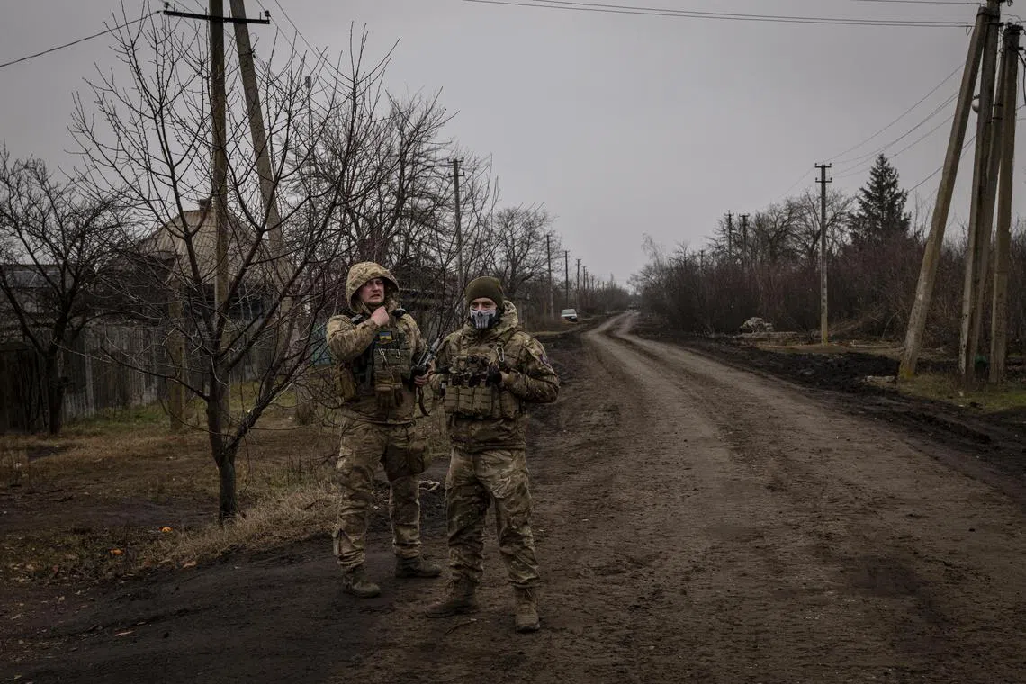 Ukrainian commander Vyshnia “Cherry” walks at the front line in Kreminna, Ukraine, during Orthodox Christmas.