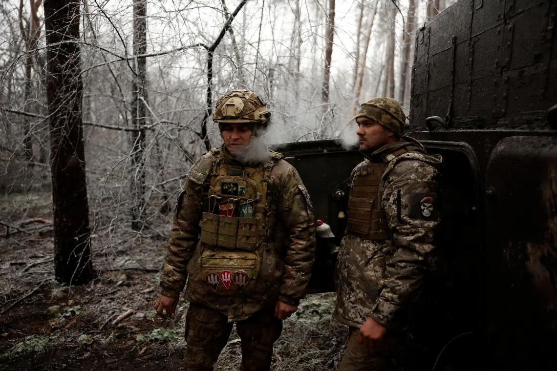 “Psycho” and Vlad, of Ukraine’s 80th Separate Air Assault Brigade, are pictured in the front-line region of Kreminna, Ukraine, during Orthodox Christmas.