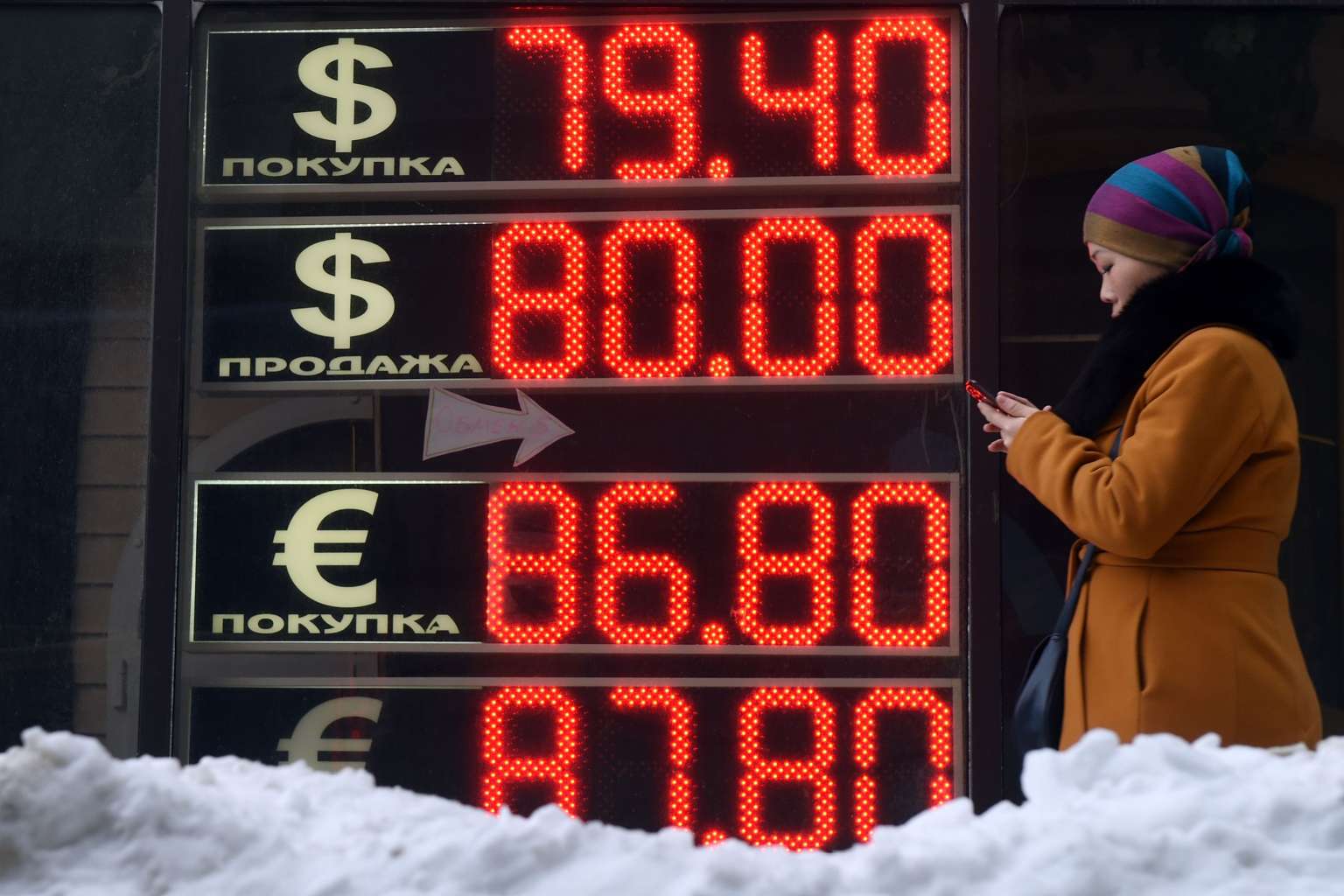 A board lists foreign currency rates against the Russian rouble in Moscow, on Jan 20, 2016.