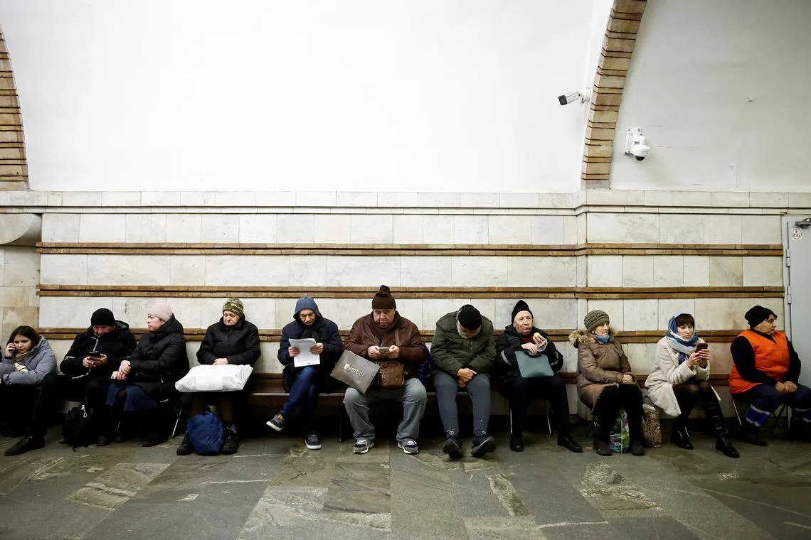 People taking shelter inside a metro station during an air raid alert, in Kyiv, on Dec 20.