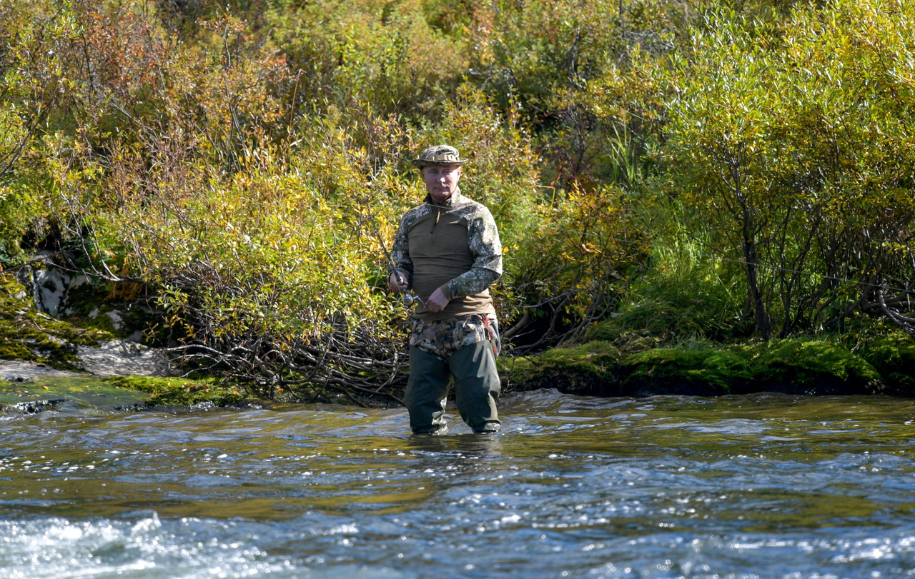 Russian President Vladimir Putin fishing during his holiday in Siberia.