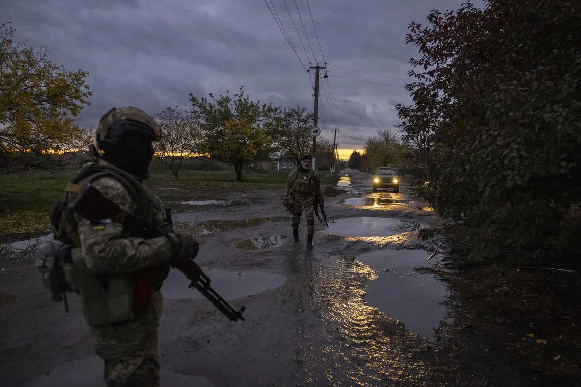 Ukrainian soldiers on a reconnaissance mission in Kherson on Oct 26, 2022.