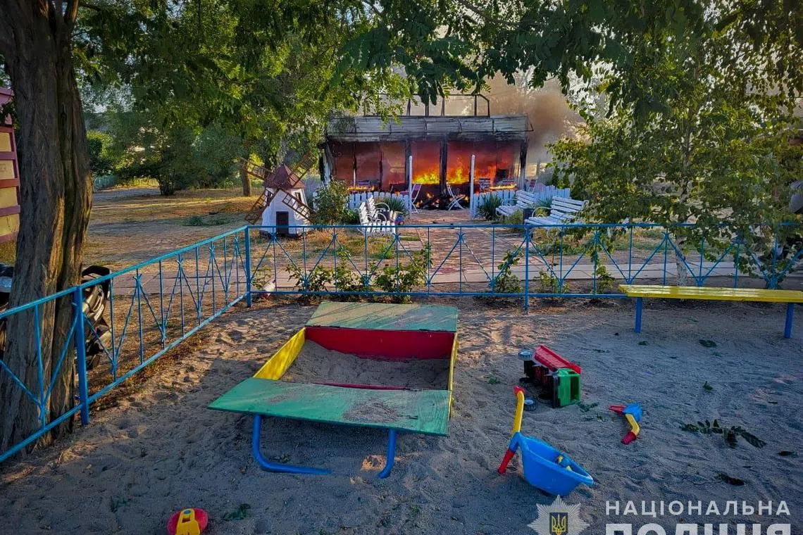 A Russian military strike hit a kiosk a few metres from a children's playground in Ukraine's southern Zaporizhzhia region.