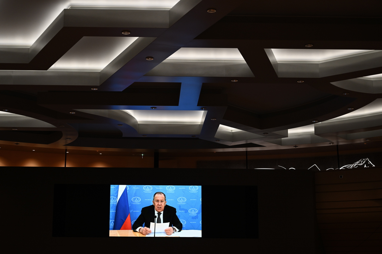 Lavrov was supposed to attend the session in person but the visit was cancelled, with Russia accusing unidentified EU states of blocking his flight path.