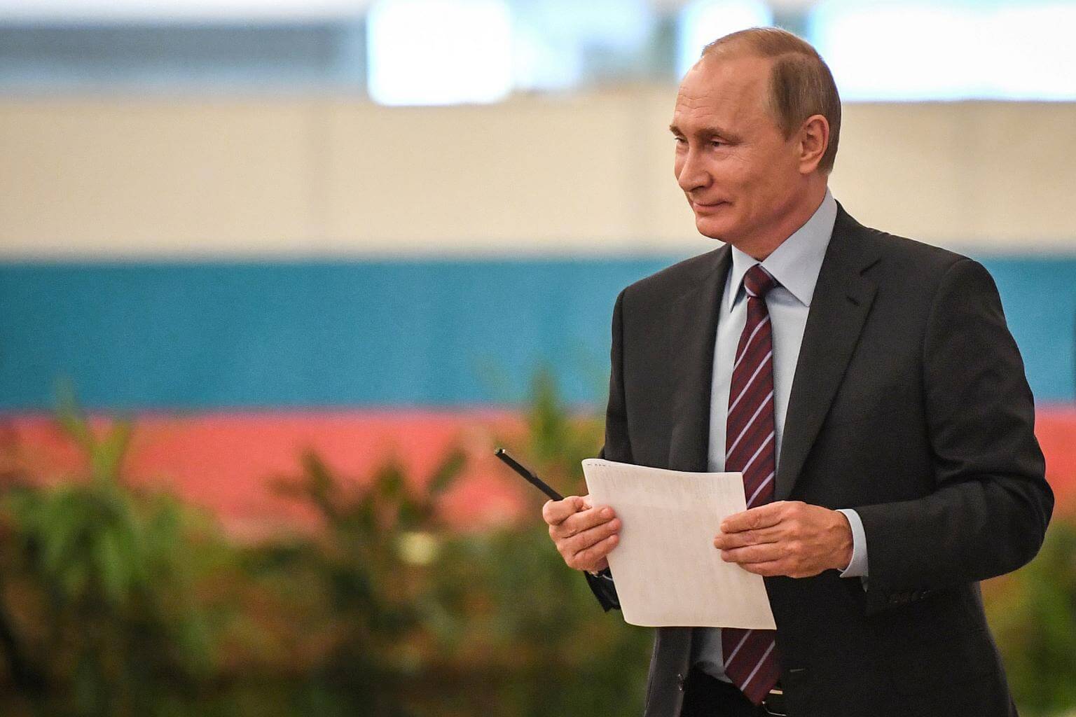 Russian President Vladimir Putin is seen at a polling station during the municipal elections in Moscow, Russia, on Sept 10, 2017.