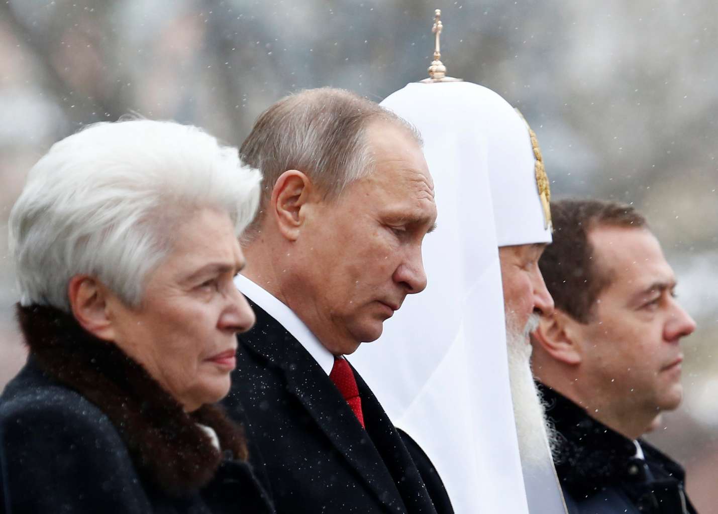 Russian President Vladimir Putin (second from left) attends a ceremony to unveil a monument of grand prince Vladimir I on National Unity Day in Moscow on Nov 4, 2016.
