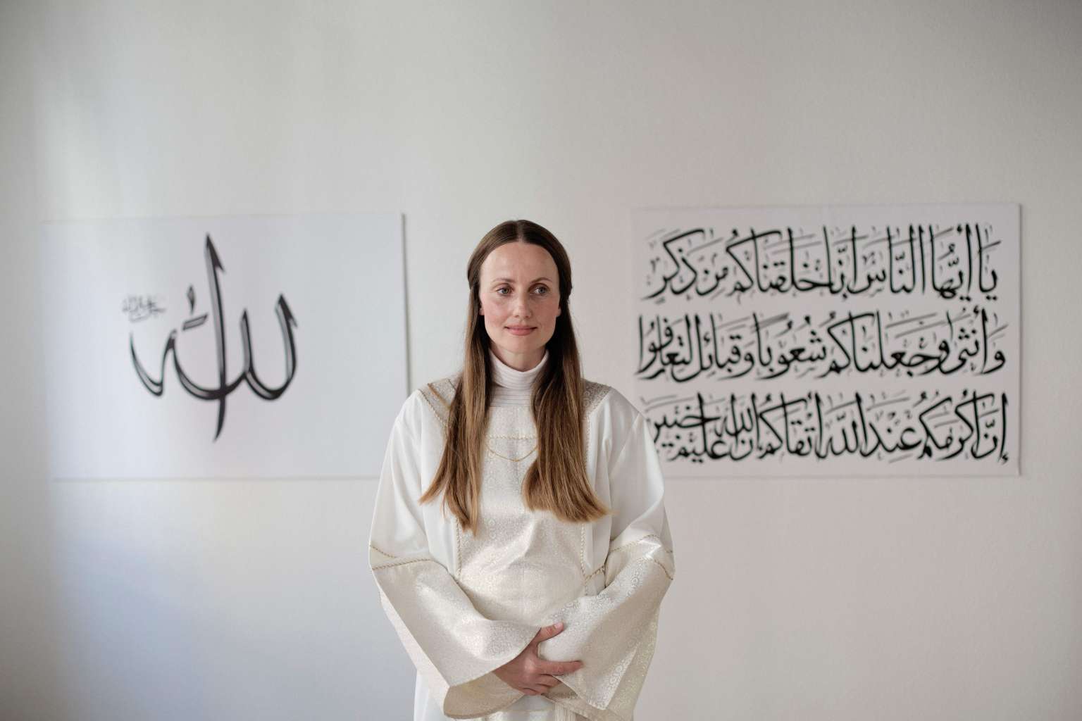 Arabic calligraphy and Islamic literature adorn its white walls, but the sounds of a bustling Copenhagen street permeate into the apartment.