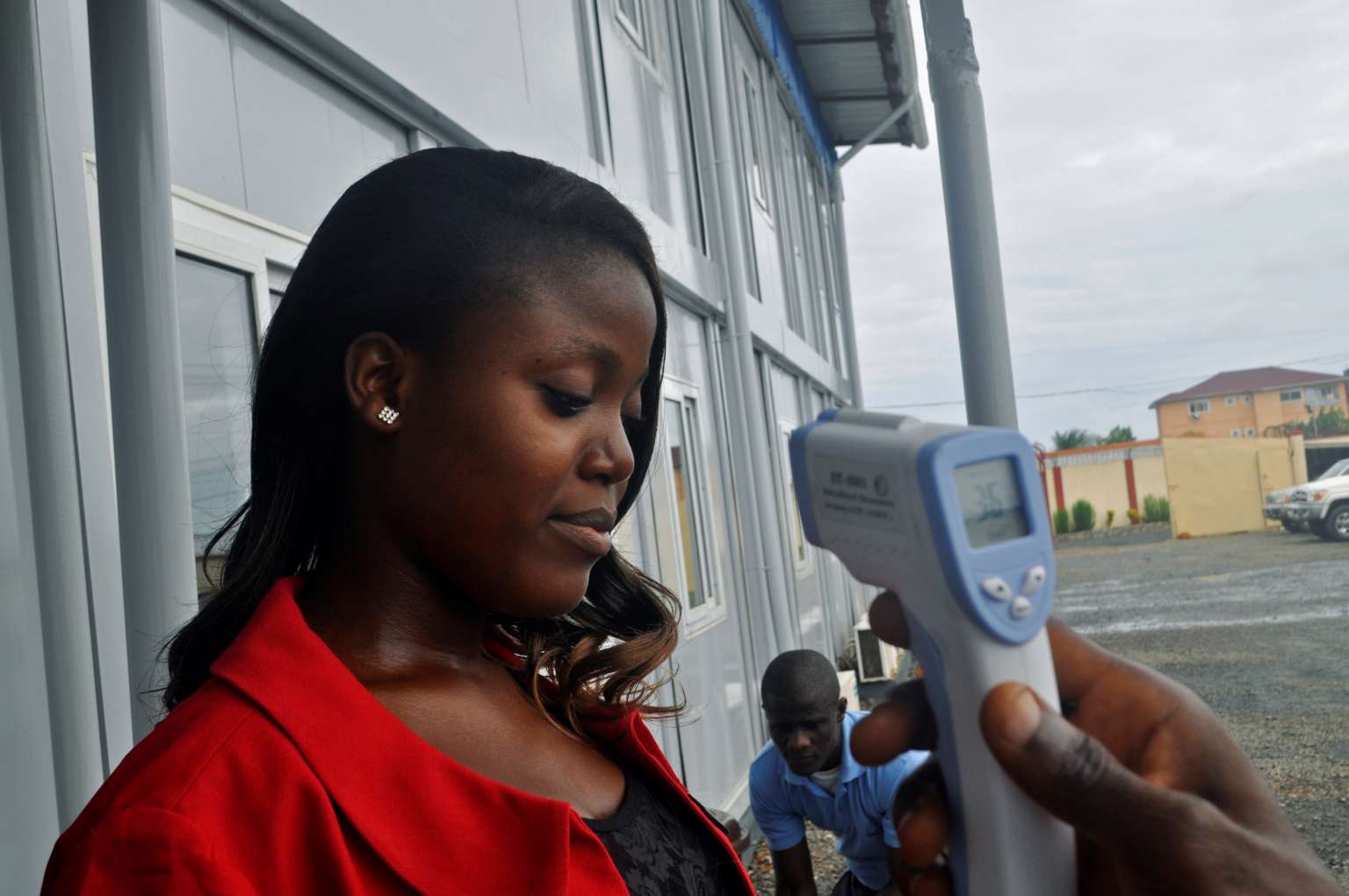 A woman has her temperature checked on June 9, 2016, before entering the Emergency Operation Centre after the World Health Organisation declared Liberia free of Ebola virus.