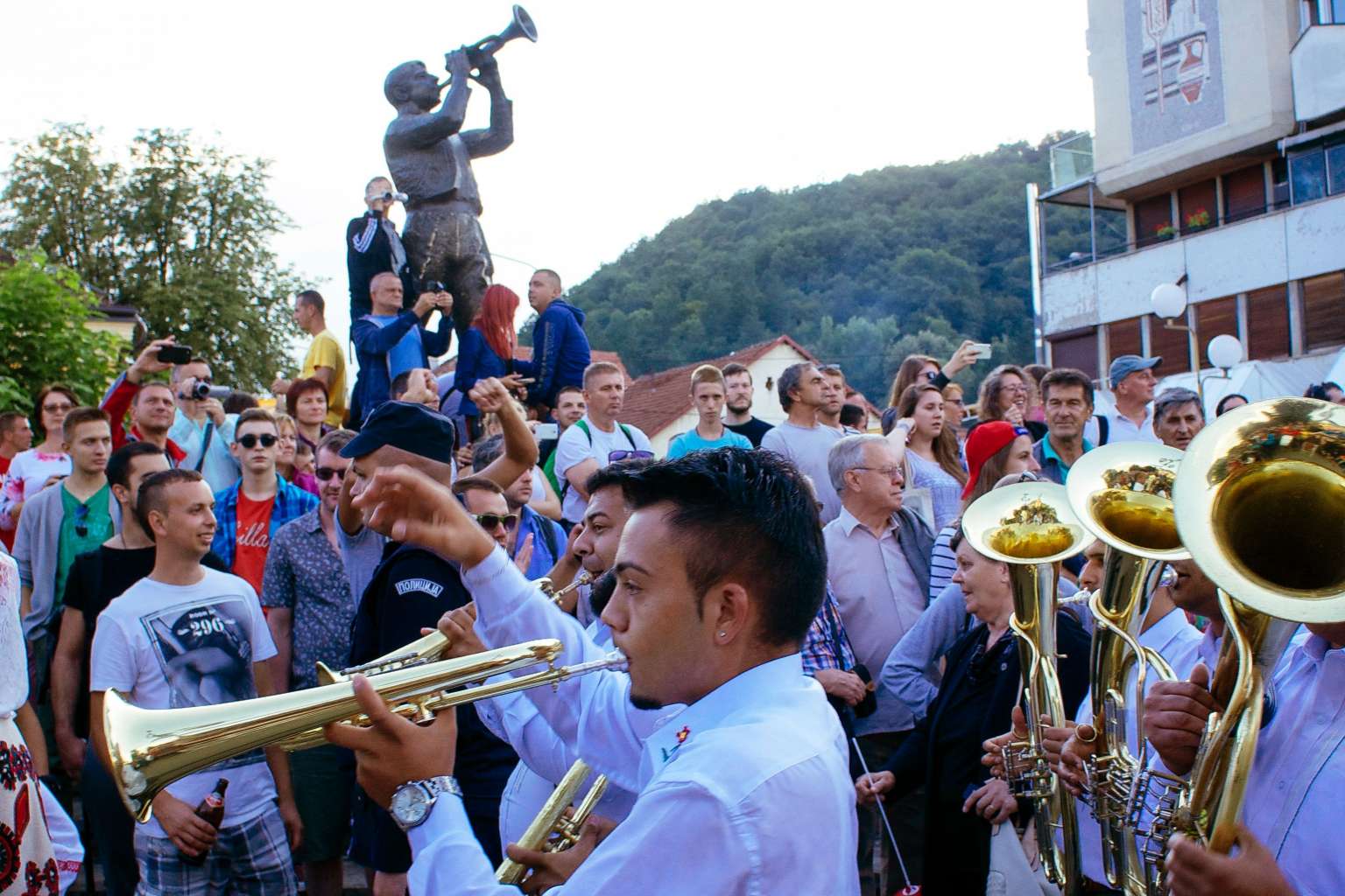 A three-hour drive from the capital Belgrade and home to just a few thousand people, Guca is now famed for its yearly festivities. A statue of a trumpeter stands in its centre.