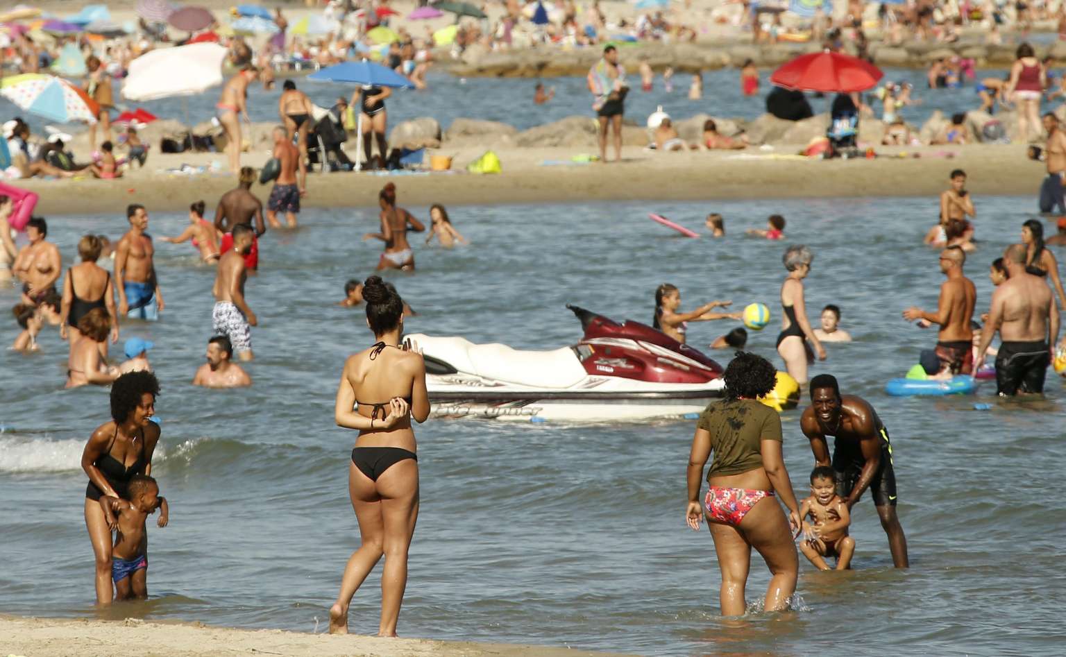 People enjoy the beach of Palavas les flots, in southern France, Aug 26, 2016.