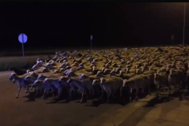 A screenshot from a video posted to Facebook by Huesca police of the sheep invasion.