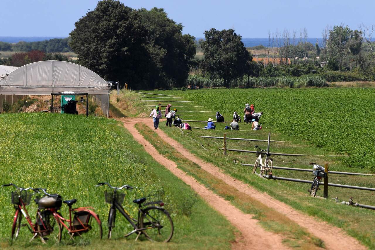 Migrant labourers working in the fields in a village south of Rome on July 1, 2021.