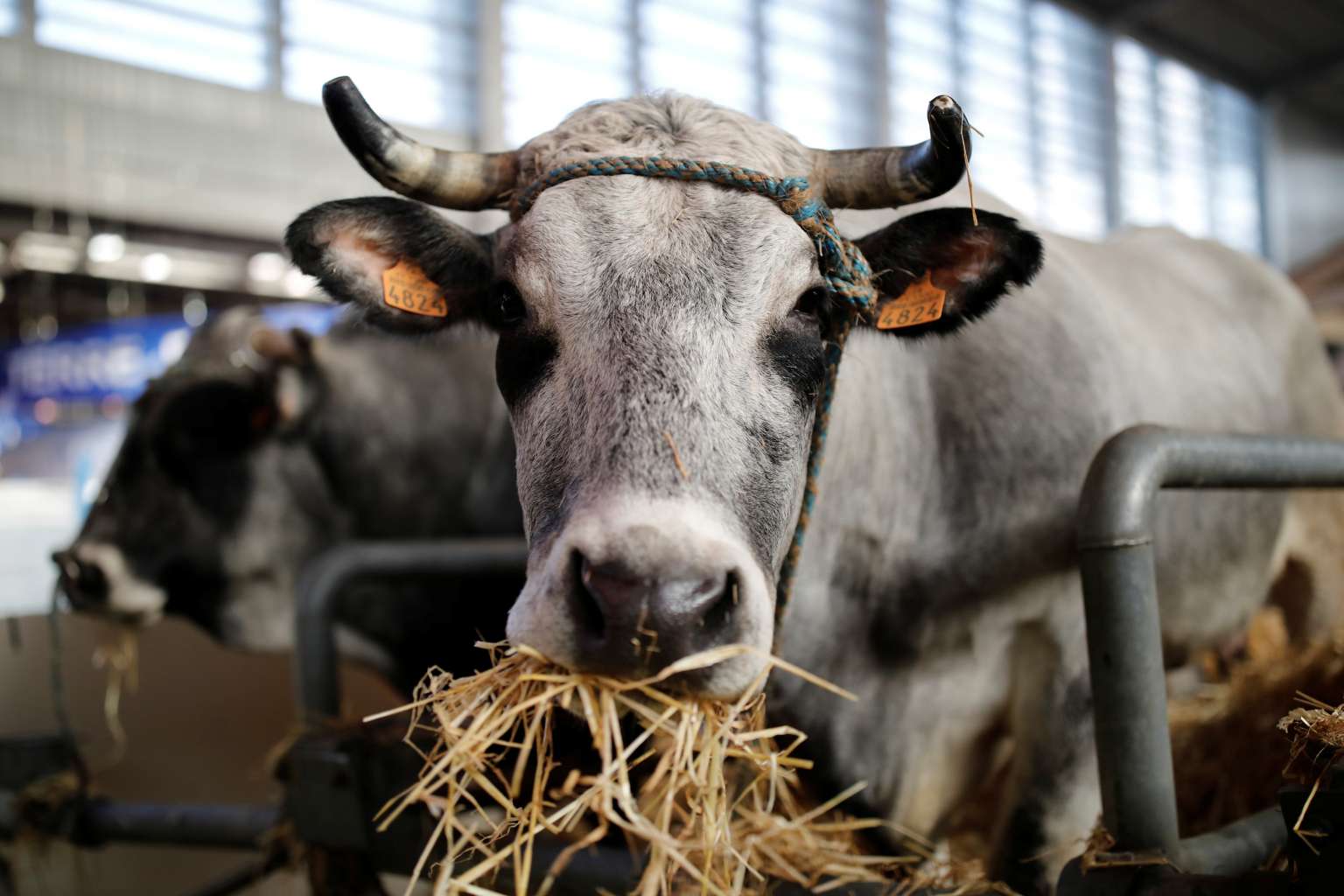 A cow is pictured on the eve of the opening of the International Agricultural Show in Paris, Feb 24, 2017.